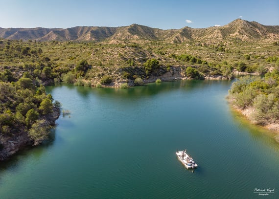 Drohnenaufnahme vom weitverästelten Ebro vor Mequinenza. Ein Anglerparadies das so weitläufig ist, dass man es sich kaum vorstellen kann!