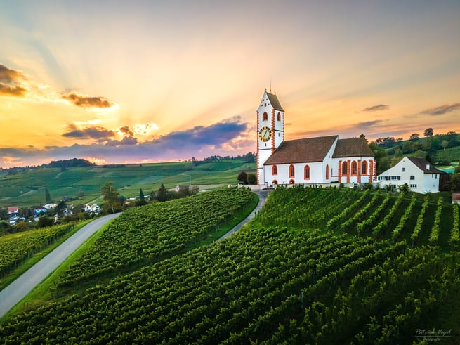 Die Hallauer Bergkirche, Sankt Moritz, bei einem tollen Sonnenuntergang
