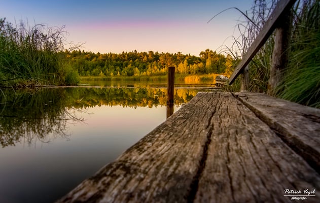 Letztes Licht über dem Untersee bei Berlingen. Auf der anderen Seeseite sind die Lichter von Horn/D zu sehen.