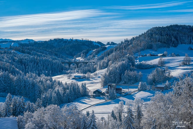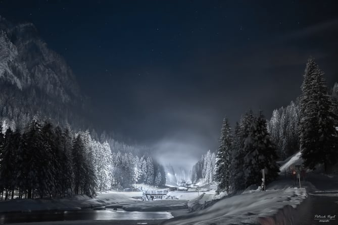 Winterliches Saminatal mit Blickrichtung Valüna, über den Valünerbach, im Fürstentum Lichtenstein :-)