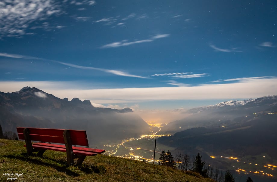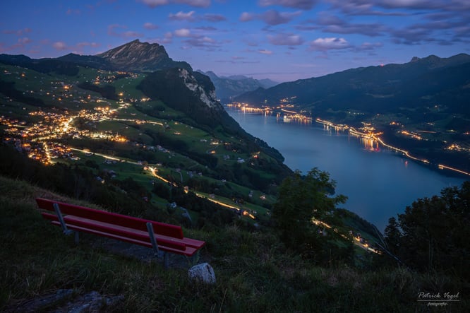 Nächtliches Panorama vom Paxmal oberhalb von Walenstadtberg