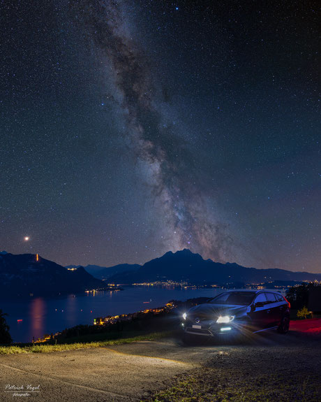 Blick von unterhalb der Rigi, über den Vierwaldstättersee hinüber zum Pilatus, unter der imposanten Sommermilchstrasse.