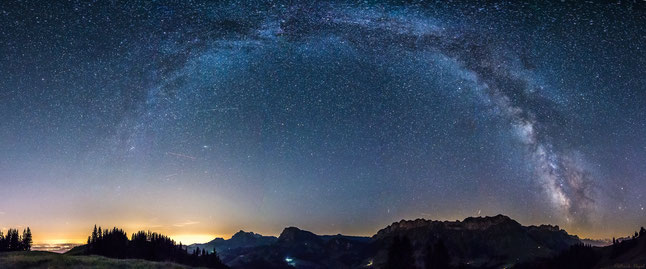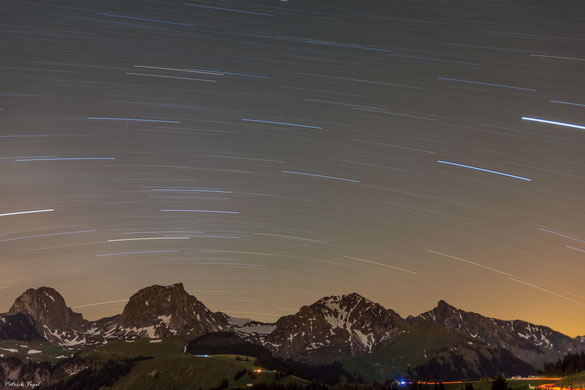 - Hintergrund, Doppelreihiges Panorama à 3 Aufnahmen/Reihe, jeweils 15 x 10s (2,5min) mit ISO 2000, f4,5, 24mm mit dem Objektiv Nikkor Z 24-120