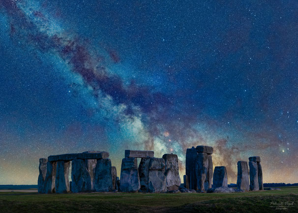 Die Milchstrasse wurde dem in den späten Abendstunden aufgenommenen Stonehengefoto nachträglich hinzugefügt. Jedoch so, wie man die Milchstrasse auch in echt sehen würde, in Bezug auf Position und Zeit, in der ich Stonehenge aufgenommen habe 🙂