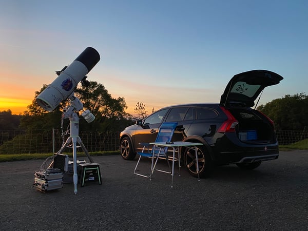 Mein geliebter Volvo V60 CC und mein mega Fotonewton 1000/200 von Lacerta auf der EQ6-R von Skywatcher, auf dem Sternenberg.